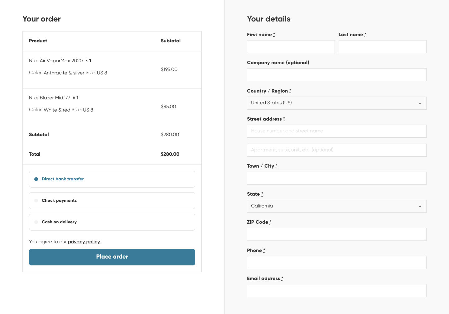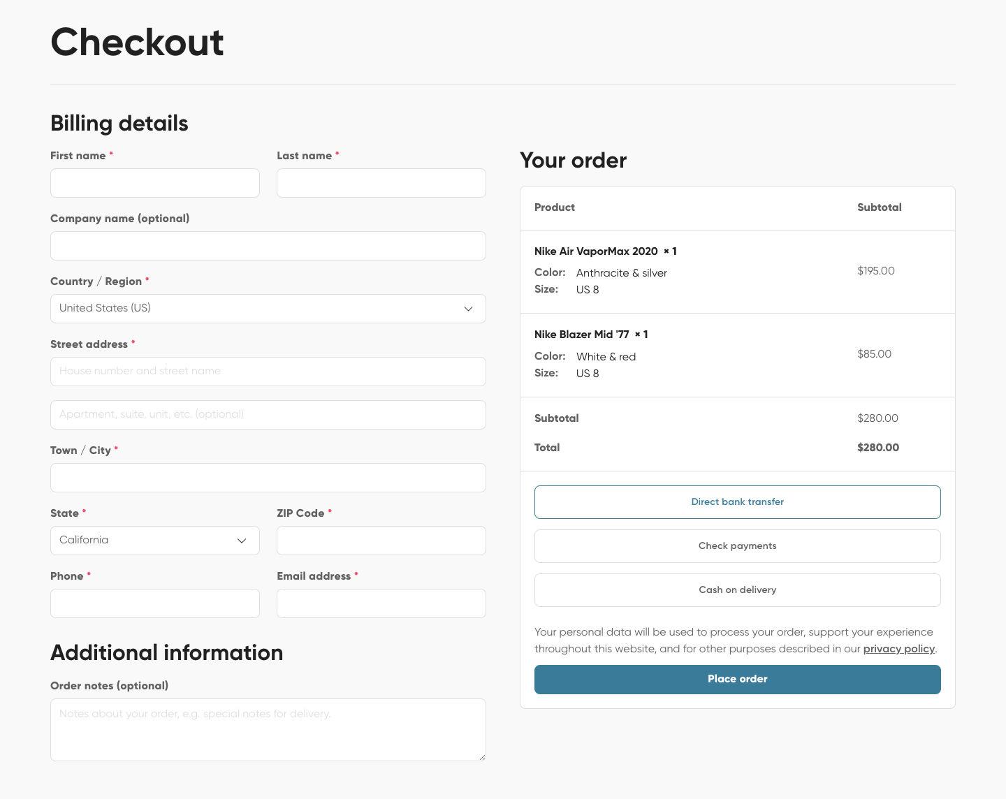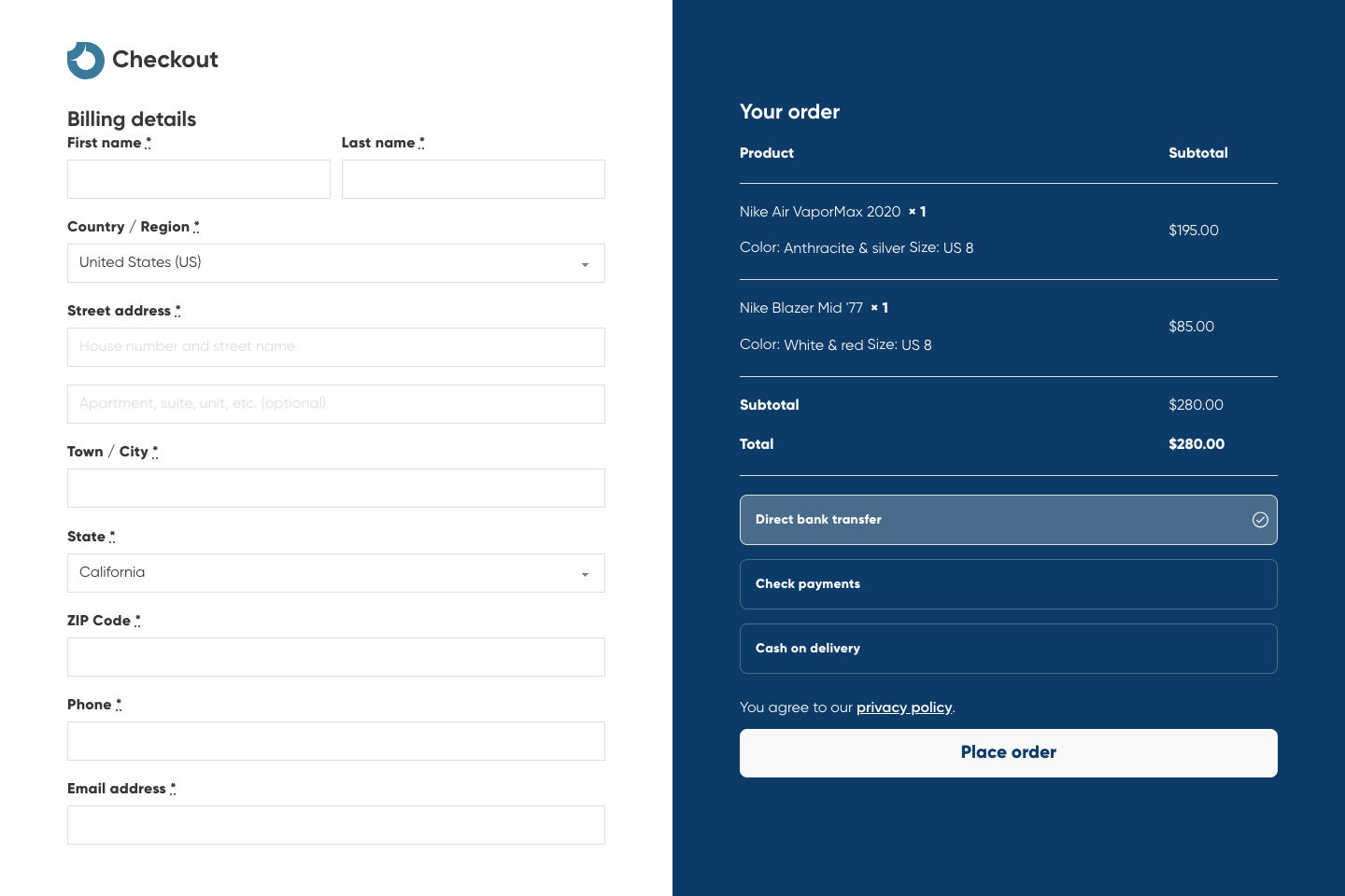 Checkout page #2